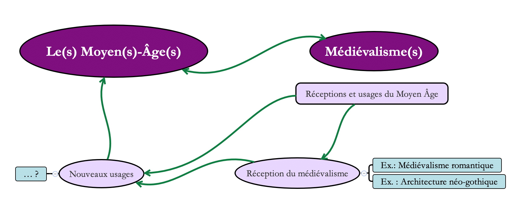 La diversité du médiévalisme peut donc renvoyer à deux questionnements majeurs : d’une part, celui de sa spécificité par rapport aux études médiévales en général, et d’autre part celui de la multiplicité des temporalités inhérentes à cette notion, qui renvoient tant à l’histoire du médiévalisme proprement dit qu’à ses divers usages culturels, politiques et sociaux, que ce soit durant la période moderne ou la période contemporaine.